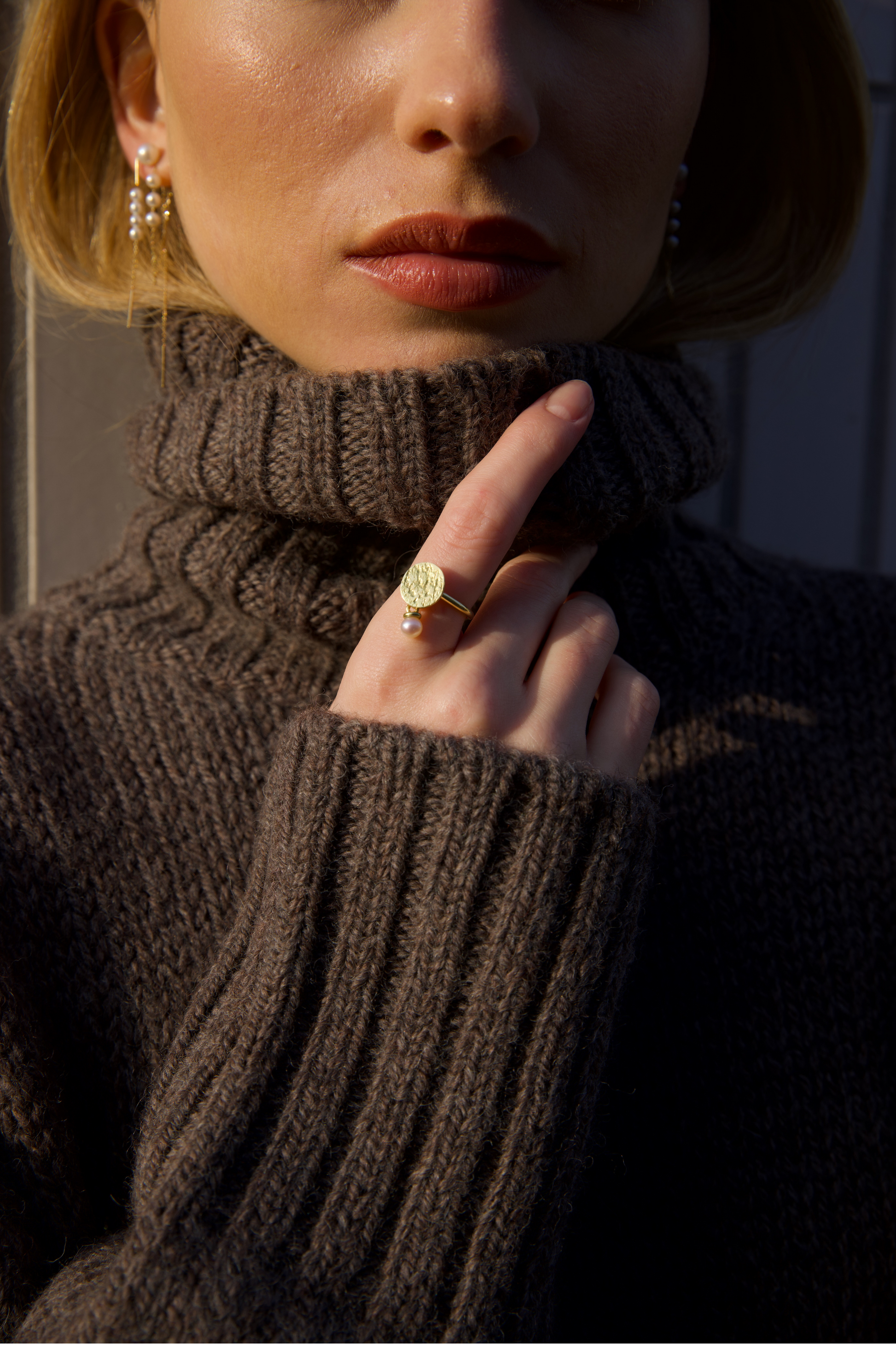 Cette bague exquise présente une perle brillante nichée dans une bande d'or brillante, capturant la beauté intemporelle de l'océan.