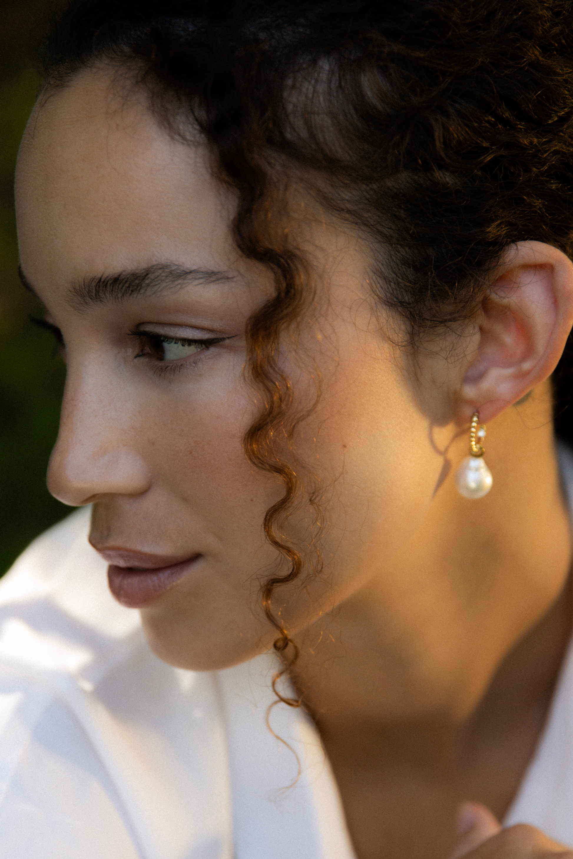 Adorned with two lustrous Baroque-shaped South Sea pearls, these hoops are a testament to nature's beauty and embrace uniqueness and individuality as each pearl is unique.