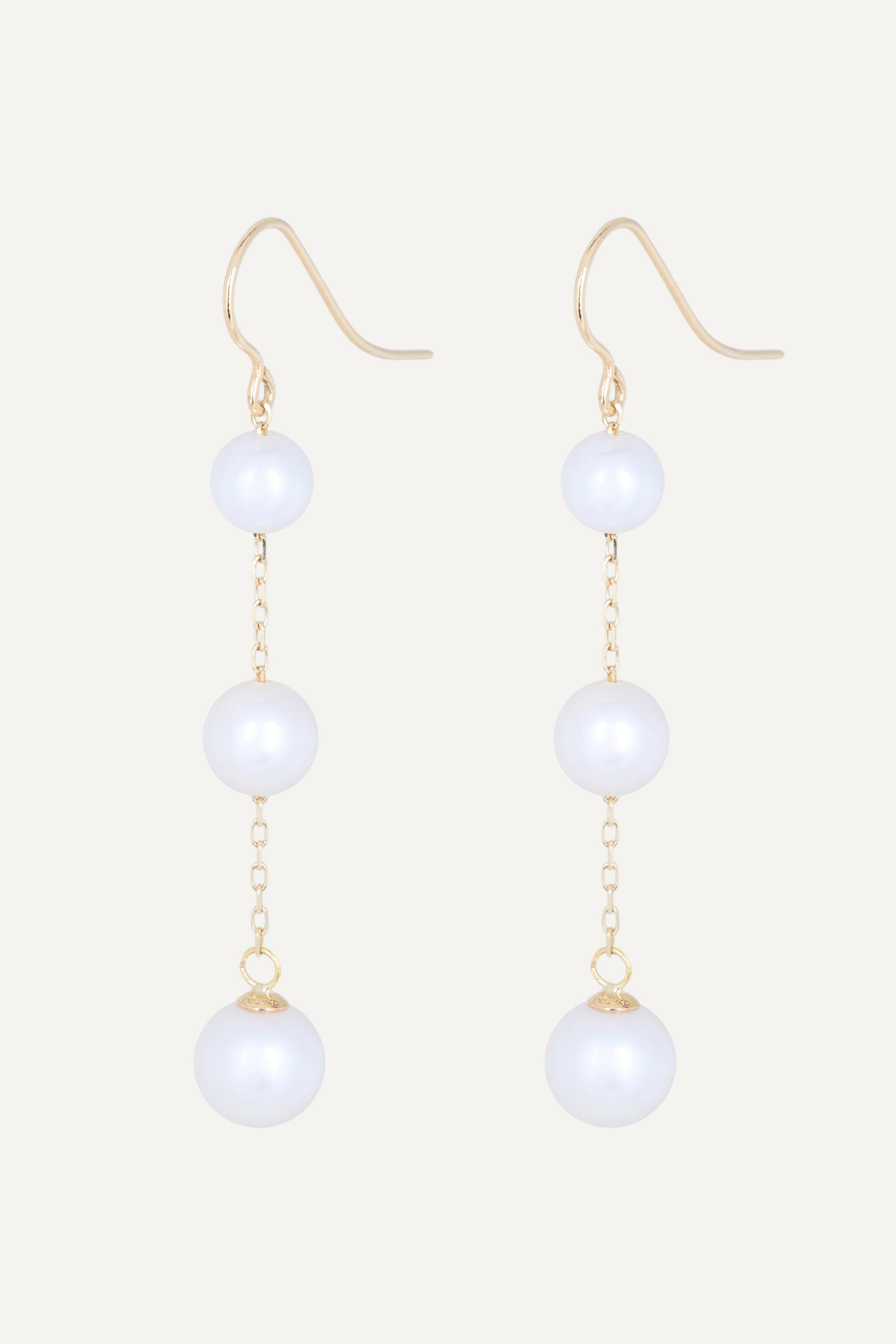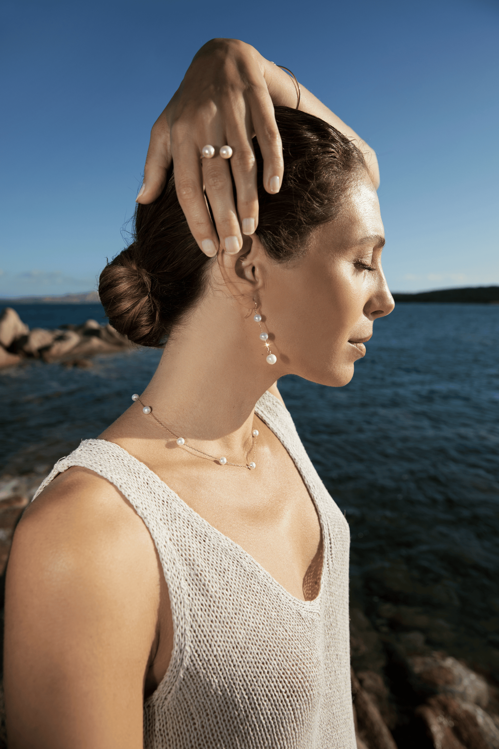 These handmade gold long earrings have 3 luminous pearls that graduate in size on a delicate chain. This design will add a touch of elegance and movement to any of your outfits.