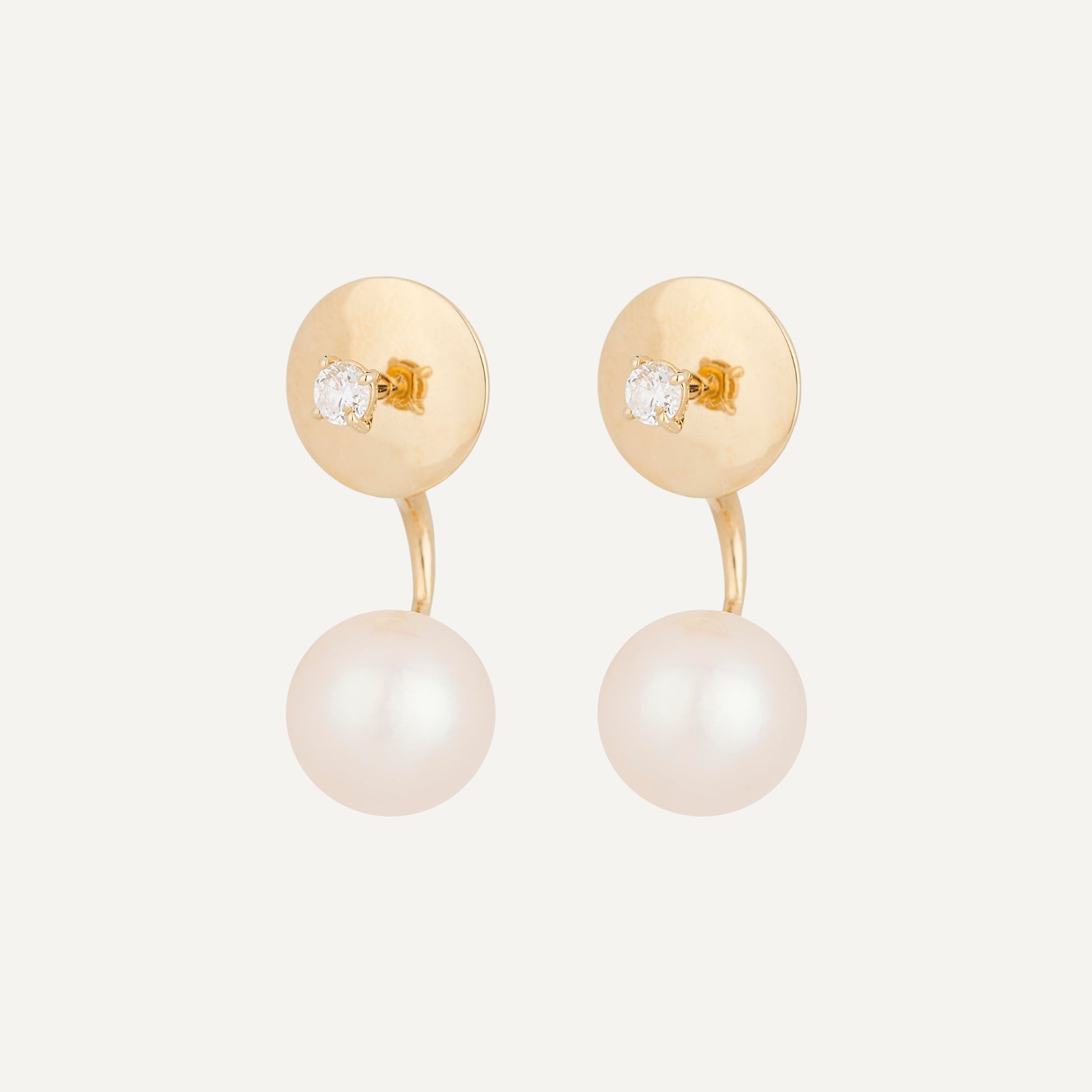 Delightfully pretty. Crafted in 18kt yellow gold, these earrings boast a round-cut sparkling diamond and a round pearl. This beautiful pair is timeless.