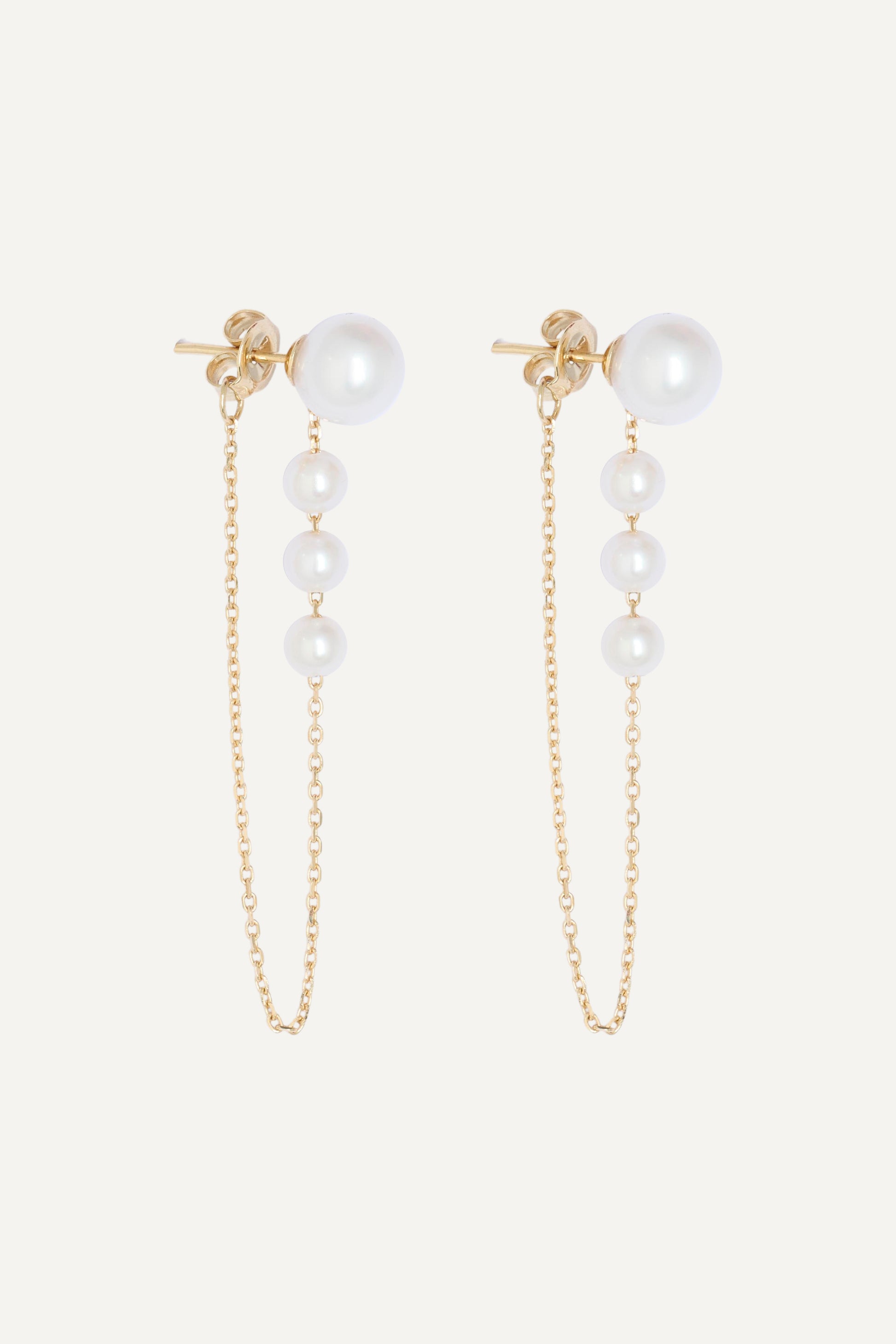 These long pearl earrings are a mesmerizing tribute to the moon and its captivating phases of light.