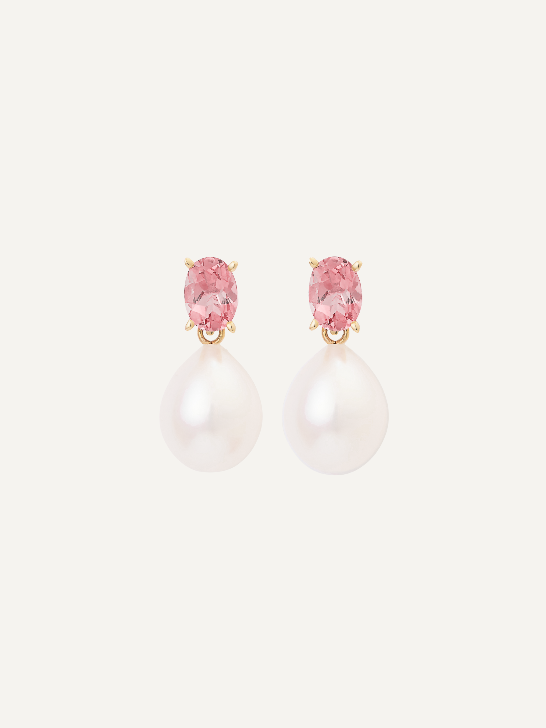 Exquisite Freshwater Pearl on 18k gold studs adorned with delicate Pink Tourmaline gems. Pink Tourmaline symbolizes love, compassion, and emotional healing, complementing the timeless elegance of Freshwater Pearls.