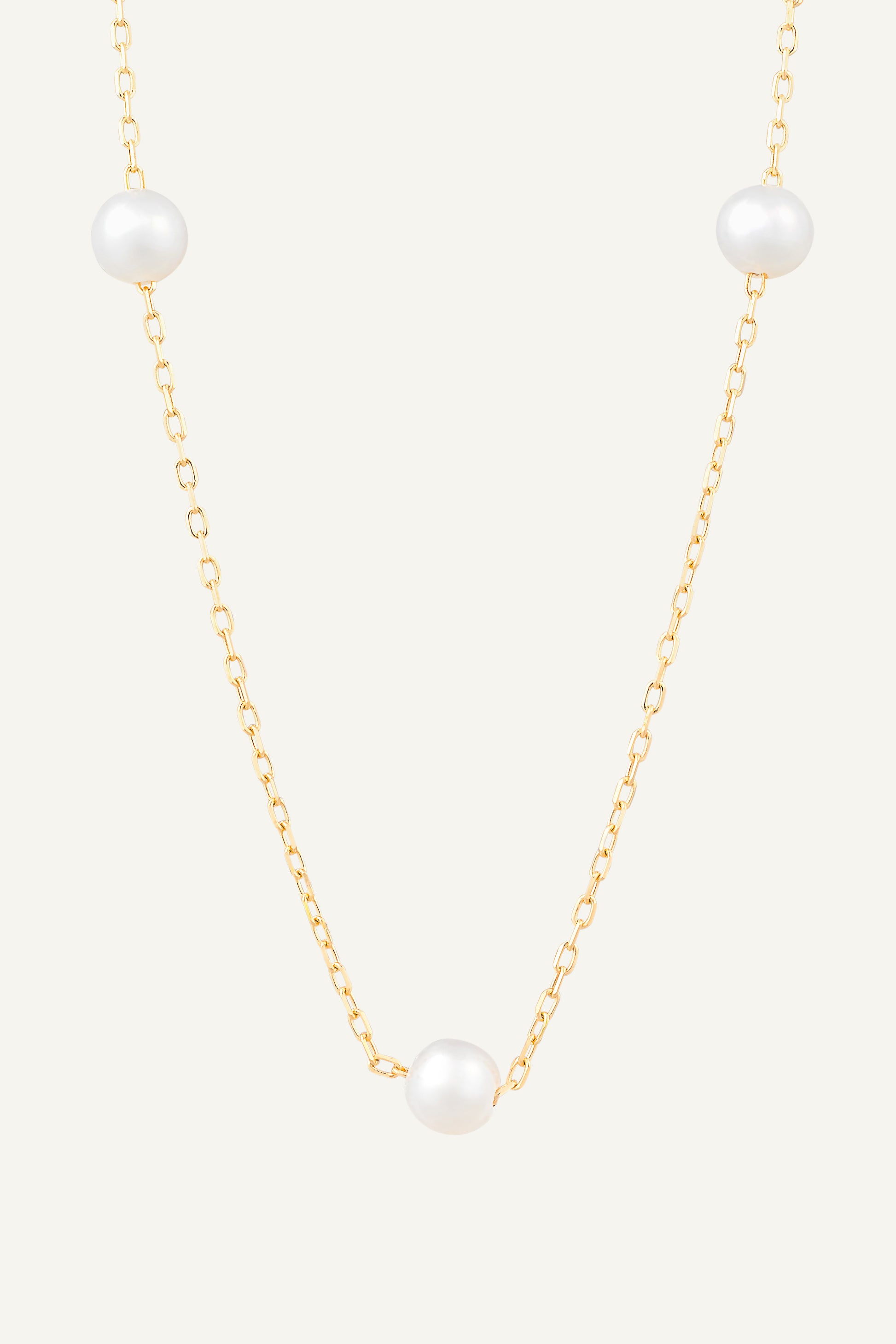 Minimalist and elegant, this necklace features three delicate freshwater pearls gracefully spaced on a fine gold chain. Its minimalist design brings a touch of softness and sophistication to any look!