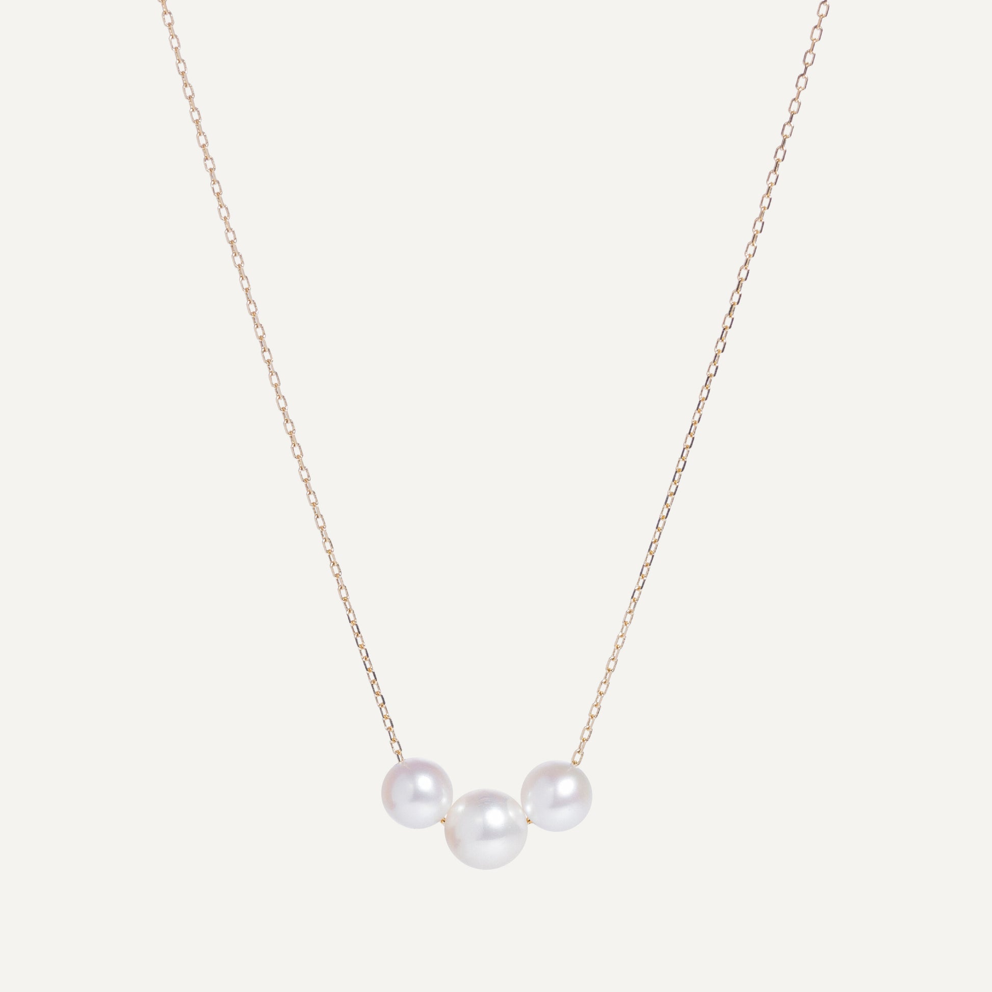 The Moon Trinity necklace is a timeless and elegant piece of jewelry that adds sophistication to any outfit with its shimmering 3 Freshwater pearls that move around its chain.
