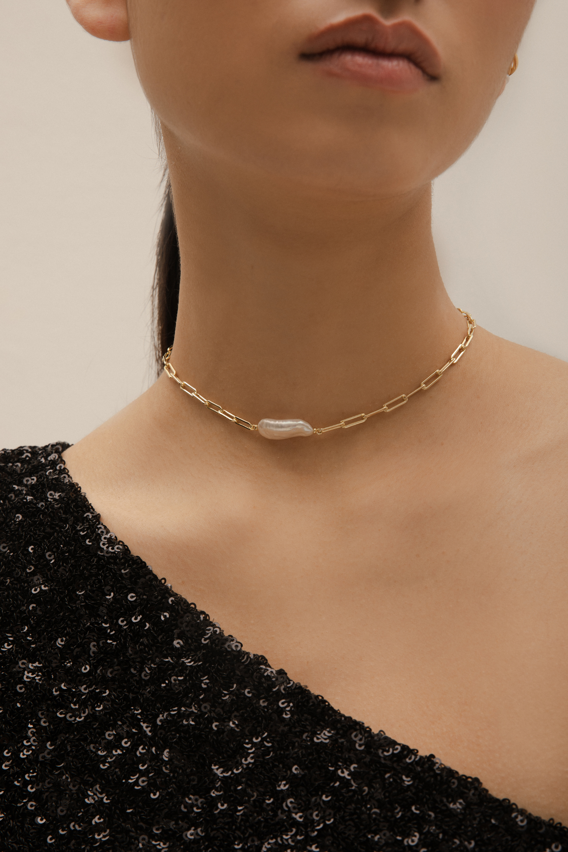 This choker has a unique and beautiful hand-picked baroque pearl. Each necklace is special as the pearl has it's own lustre, shape and colour.