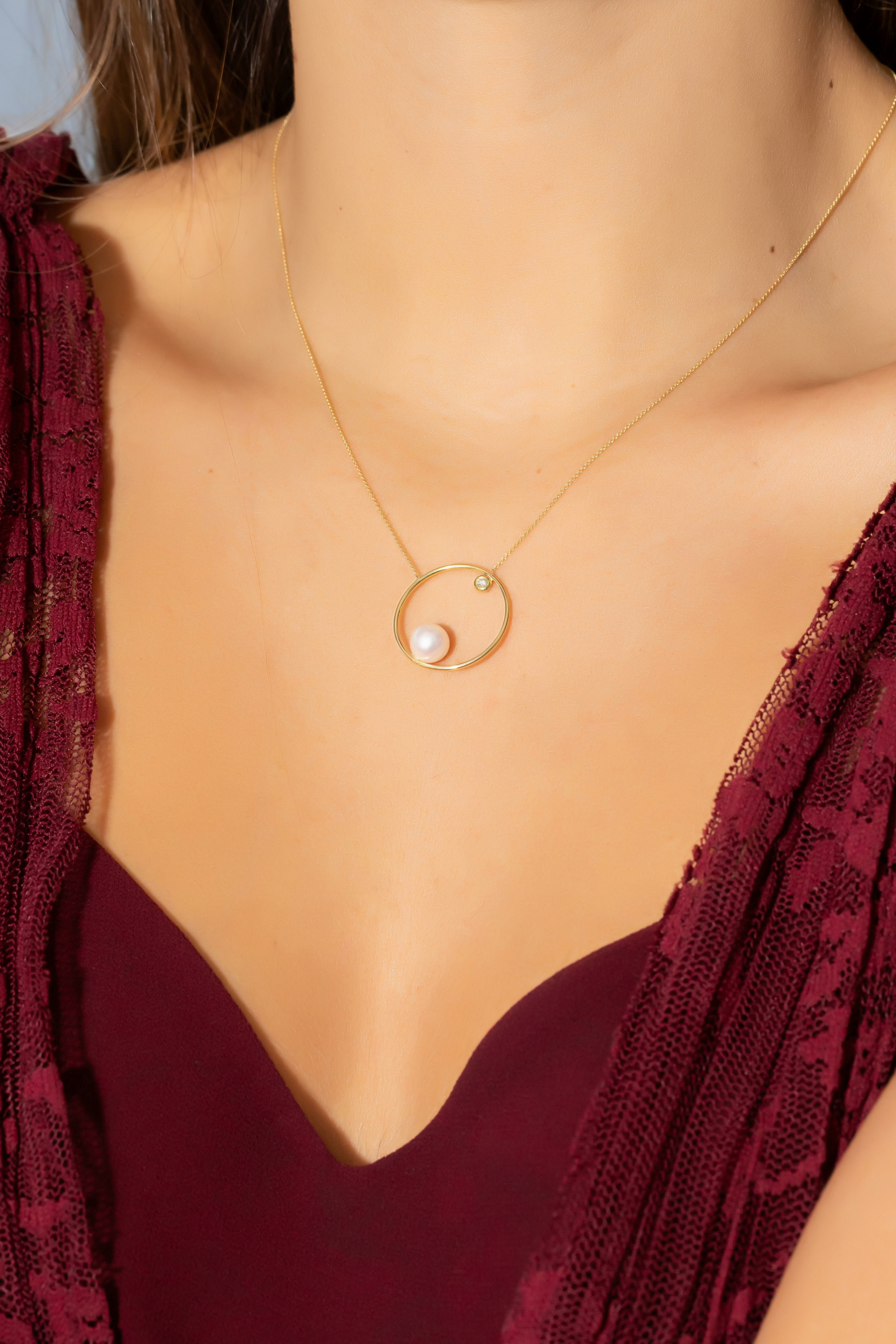 Our Sole necklace will add shine to any of your outfits with its beautiful round diamond and lustrous freshwater pearl.